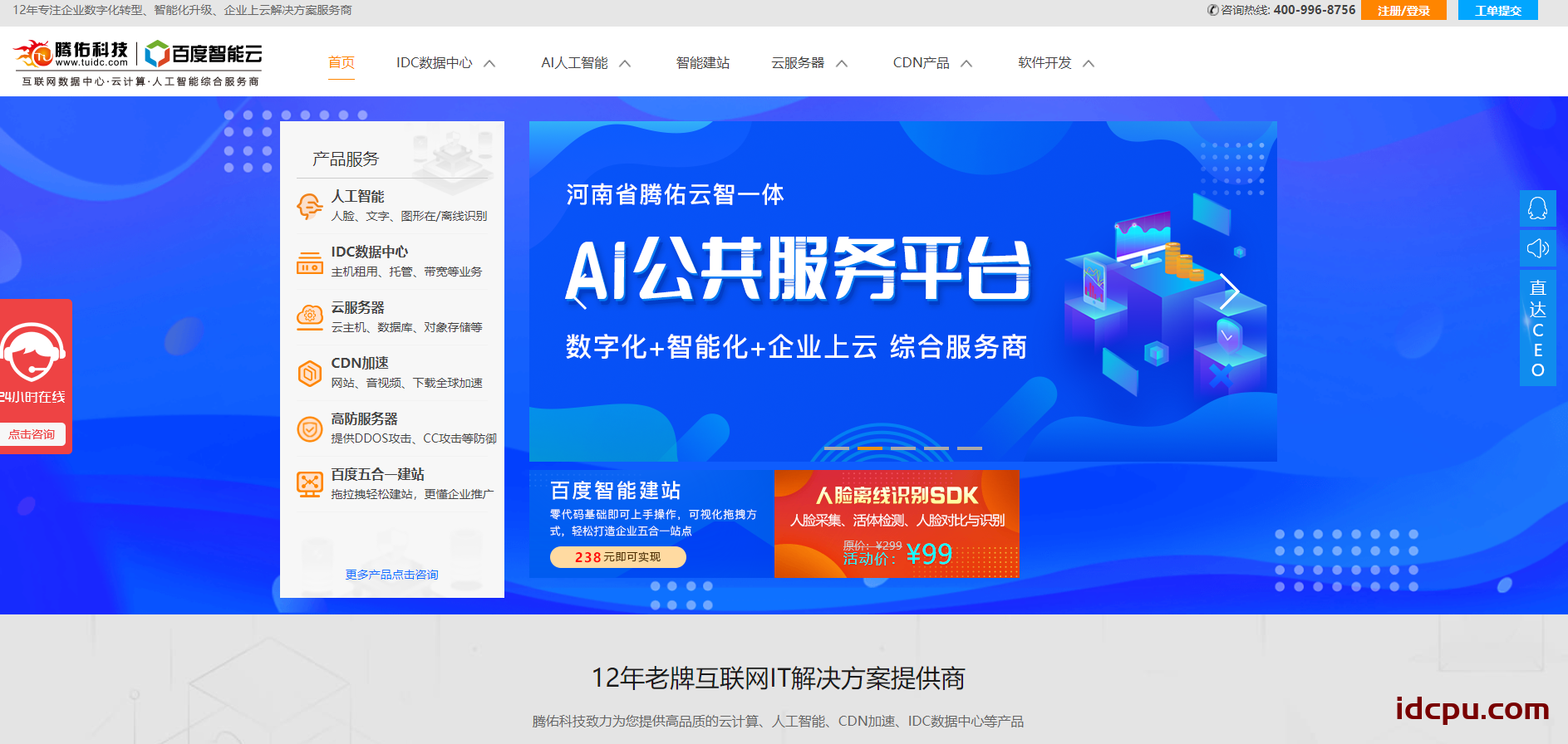 领先的IDC数据中心、云计算、人工智能、CDN加速服务提供商